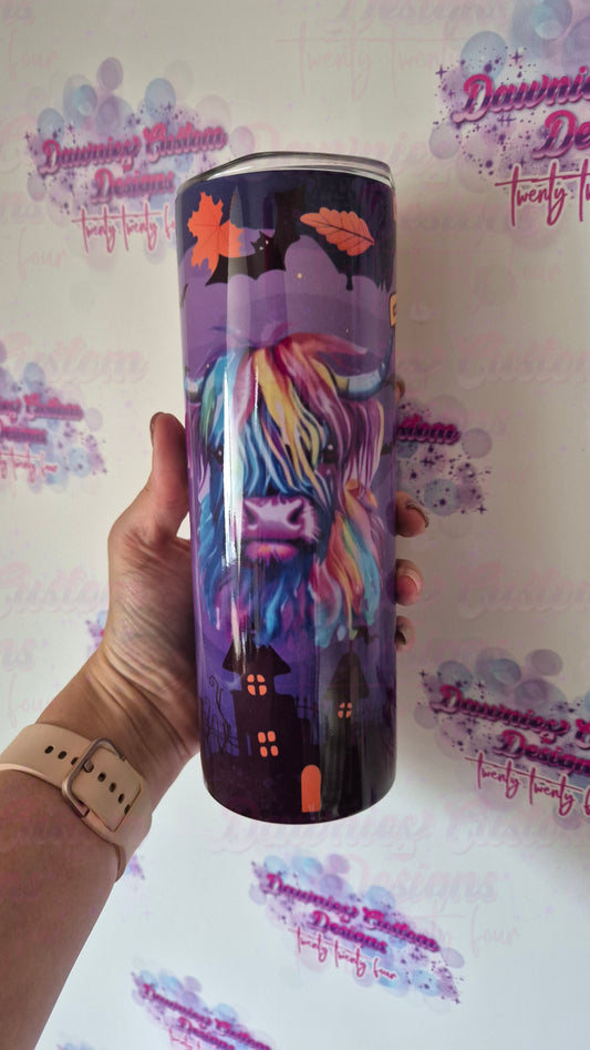Halloween Themed 20oz Colourful Highland Cow Tumbler